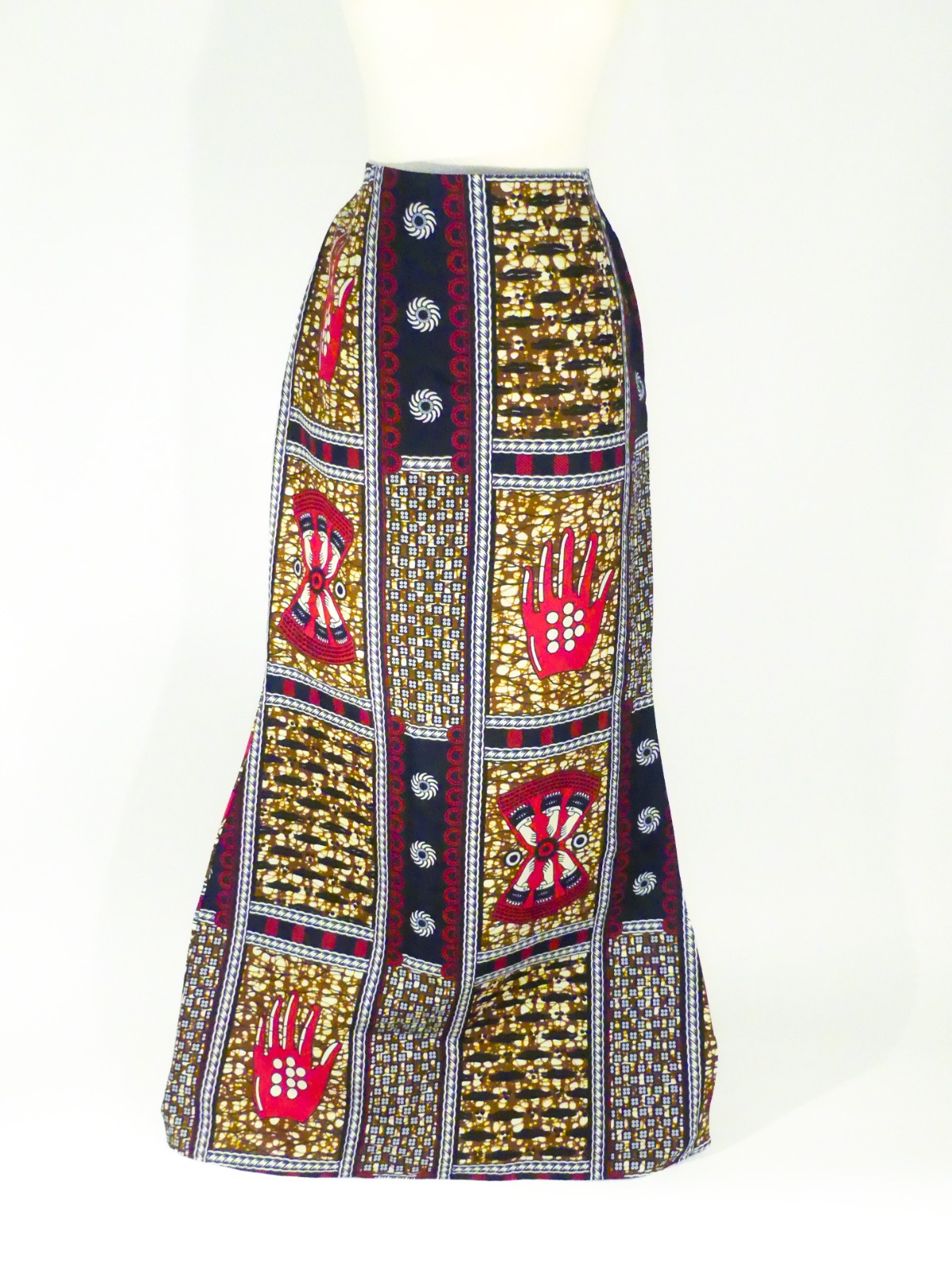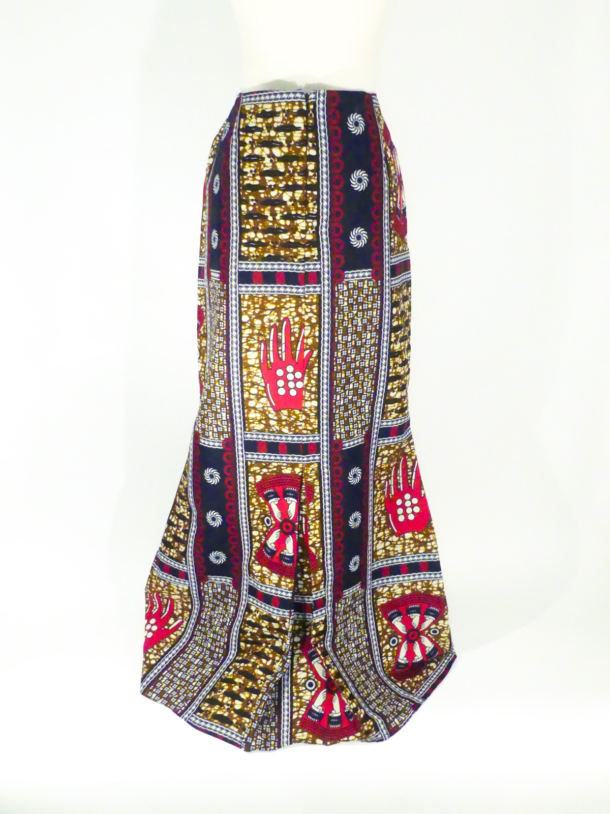 La falda larga estampado africano Diabaté es una celebración de la moda consciente que conecta estética y compromiso social. Confeccionada de forma artesanal con tejido wax 100% algodón y forro reciclable, esta prenda destaca por su estampado en tonos rojo, negro y amarillo, que evoca elegancia y dinamismo en perfecta armonía.